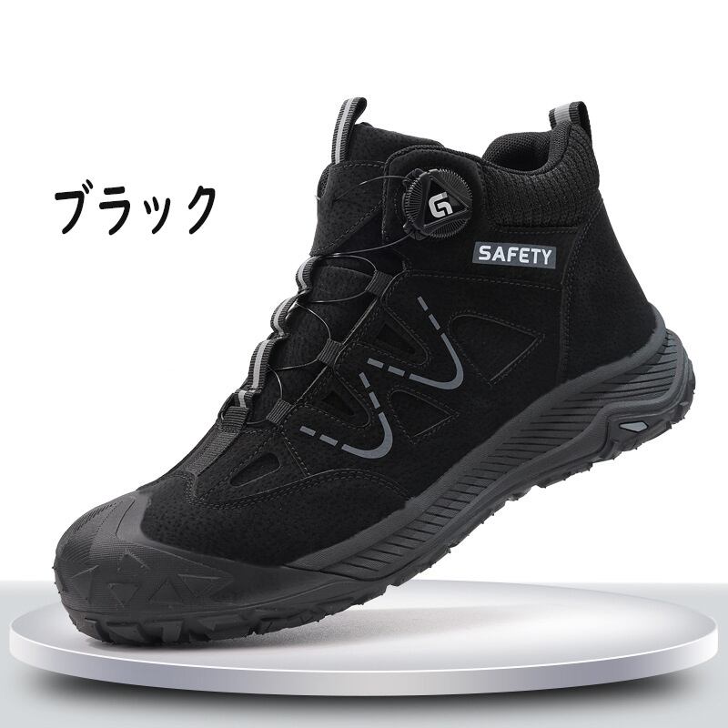 この安全靴は、メンズ・レディース向けにデザインされたハイカットのスニーカーです。紐なしの設計により、脱ぎ履きが楽で、忙しい日常にぴったり!シンプルでおしゃれな黒のデザインは、普段使いから仕事まで幅広く活用でき、どんなコーディネートにもマッチします。また、踏み抜き防止機能も備えているため、作業環境でも安心して着用可能です。