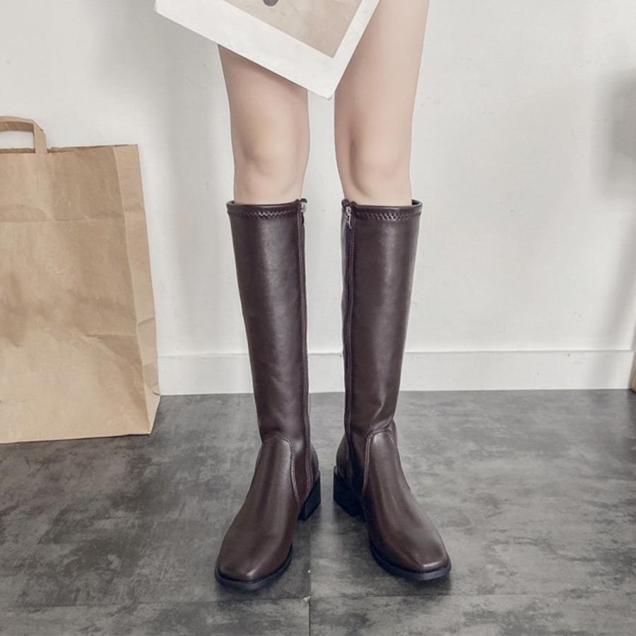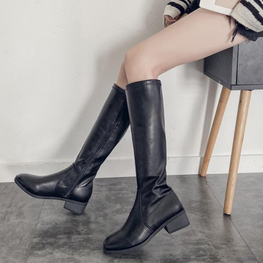 ロングブーツ レディース ニーハイブーツ 歩きやすい 黒 白 20代 30代 40代 50代 抜水 太ヒール ラウンドトウ カジュアル 痛くない 無地 きれいめ エレガント 美脚