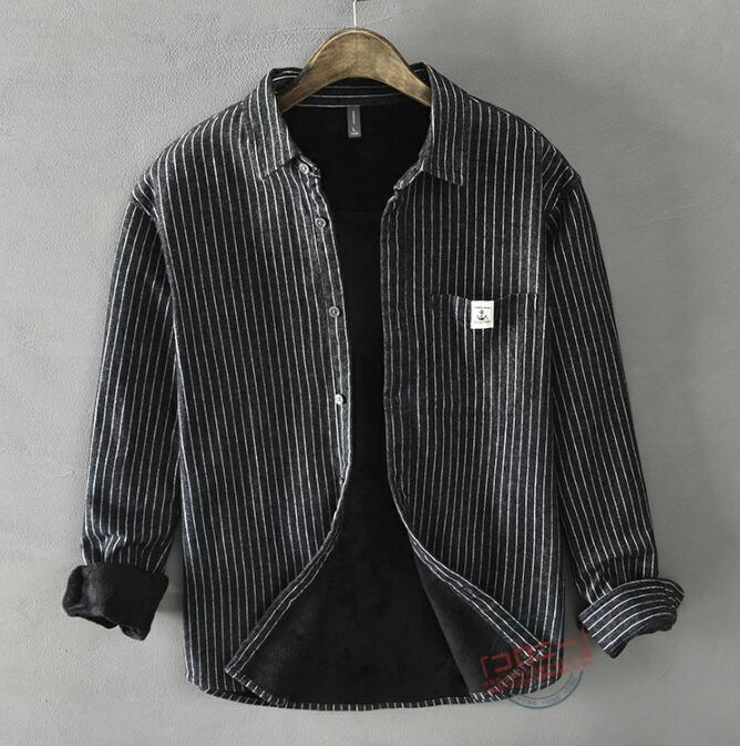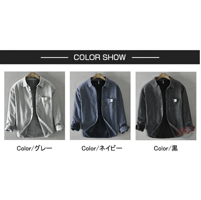 【暖かさとスタイルを両立した一着!ボアシャツ メンズ シャツ 裏起毛 黒 防寒着 スタンドカラー 長袖】