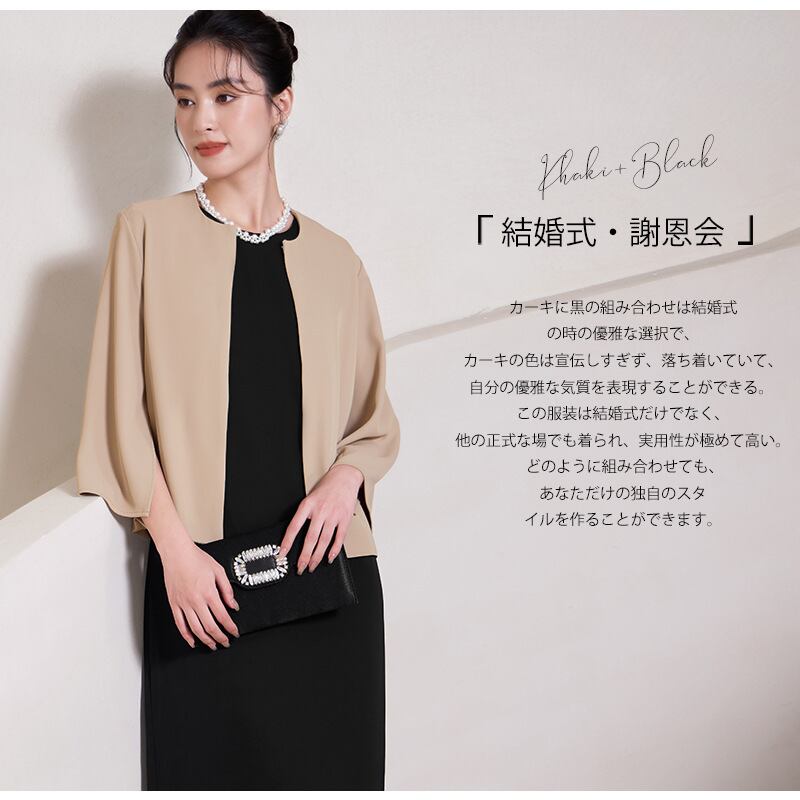 このワンピーススーツは、入学式、卒業式、結婚式、さらには母親の役割を果たす特別なセレモニーに最適なデザインが魅力です。30代から60代の女性に向けて、体型を自然にカバーするシルエットを採用し、シーンを選ばず自信を持って着こなせるスタイルを実現します。洗練されたカラーリングが、フォーマルな場面に温かみと華やかさを添えます。
