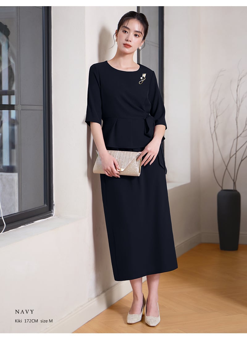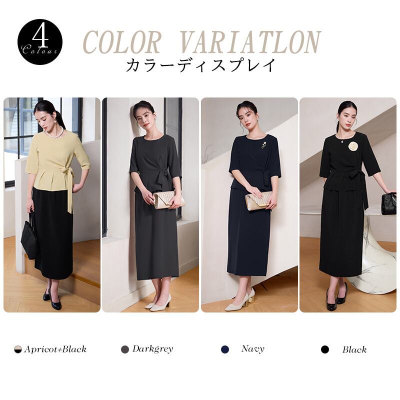 このレディースセットアップは、入学式や卒業式、入園式、卒園式、七五三、結婚式などの特別なイベントに最適なデザインが特徴です。特にママや母の方々を意識したシルエットは、体型を優しくカバーし、自信を持って着用できるスタイルを実現します。シックな黒のカラーリングは、フォーマルな場面においても常に上品な印象を与えます。