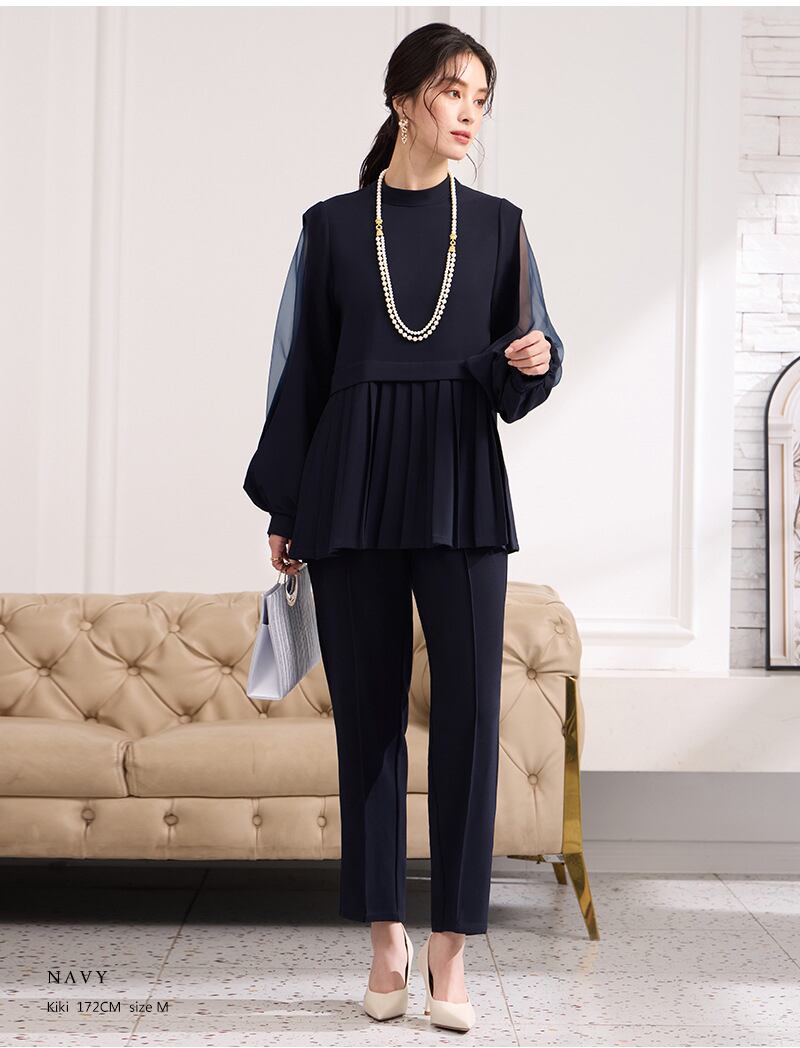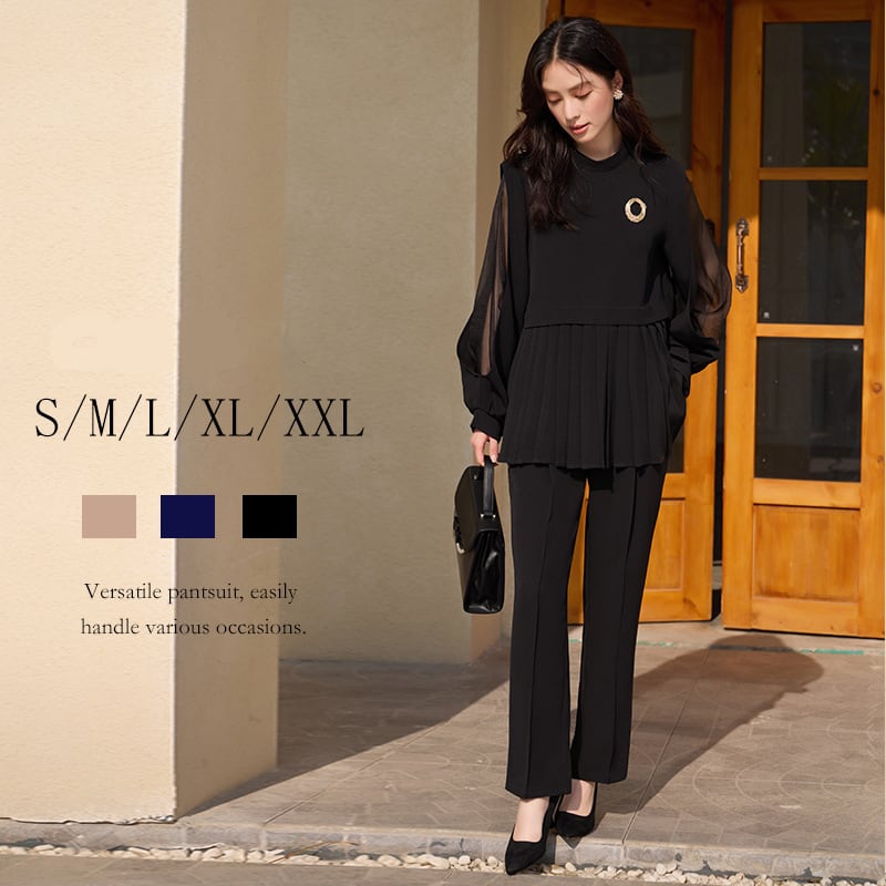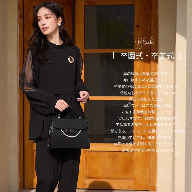この魅力的なレディースセットアップは、入学式、卒業式、面接、そしてセレモニーシーンにぴったりのデザインが特徴です。特にママや母の方々に向けて考案されたオールインワンスタイルは、体型を優しくカバーし、自信を持って着こなせるシルエットを実現しています。シックな黒のカラーは、フォーマルな場面においても上品さを演出し、特別な瞬間をより華やかに彩ります。