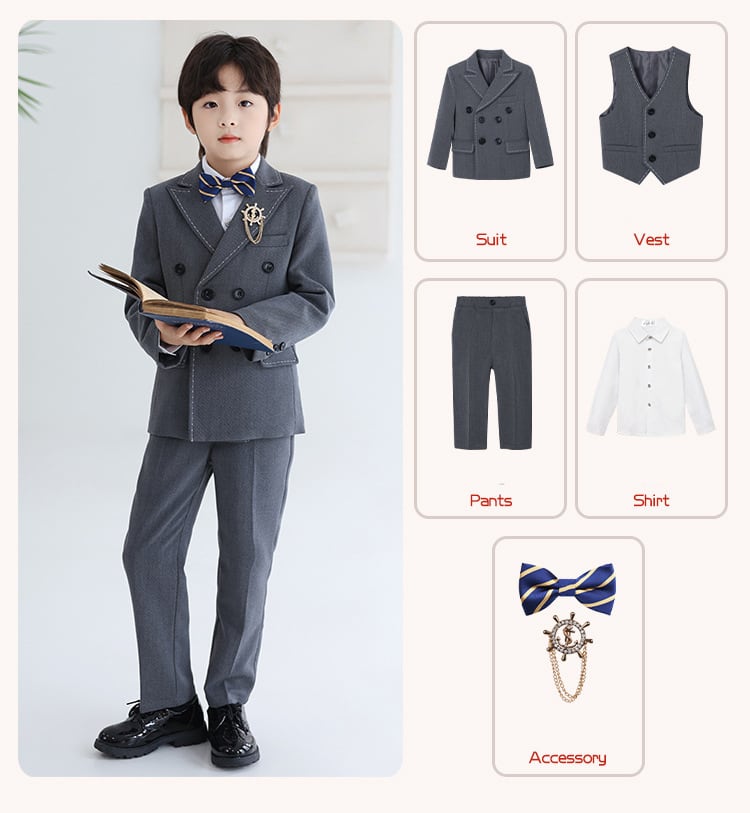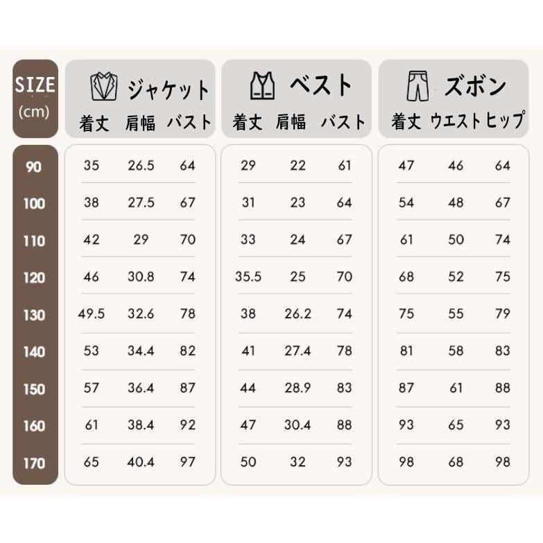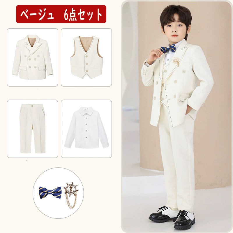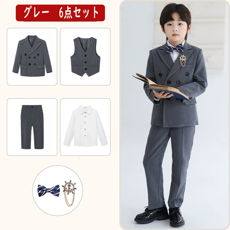 この魅力的なスーツは、入学式、卒業式、入園式、卒園式、発表会、結婚式、七五三など、特別なシーンにぴったりのデザインが特徴です。90㎝から170㎝までサイズをご用意しており、成長に合わせて選べるのが嬉しいポイント!おしゃれな6点セットは、ジャケット、パンツ、シャツ、ネクタイ、ベスト、ブローチが揃っており、フォーマルな装いを一式整えることができます。