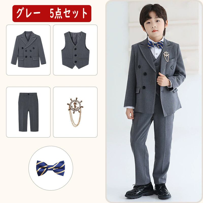 スーツ 男の子 入学式 卒業式 入園式 卒園式 発表会 子供 フォーマルスーツ 140 150 160 誕生日 七五三 おしゃれ 5点セット キッズ 結婚式 撮影