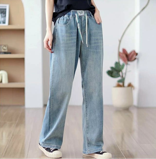 ジーンズ デニムパンツ レディース ワイドパンツ 春 夏 大きいサイズ ゆったり ストレート ウエストゴム 体型カバー 着回し
