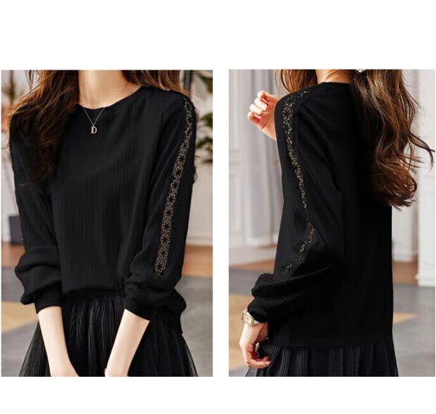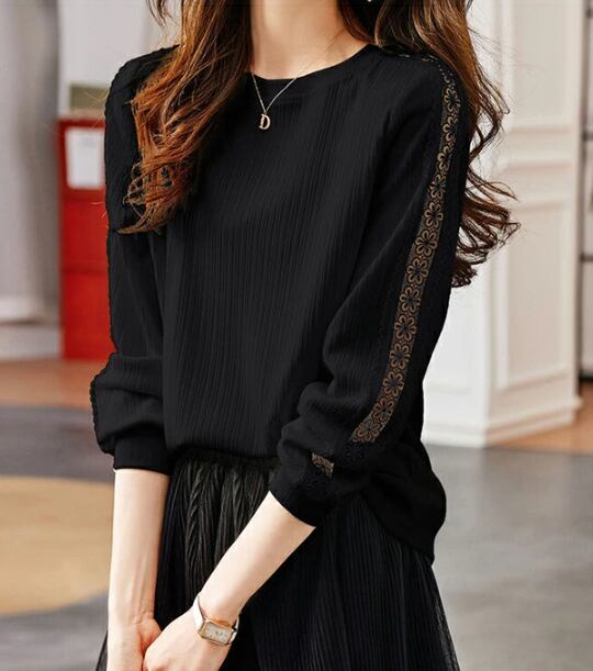 ブラウス 長袖 レディース カットソー シンプル 無地 体型カバー 黒 白 カジュアル ルームウェア 通勤通学