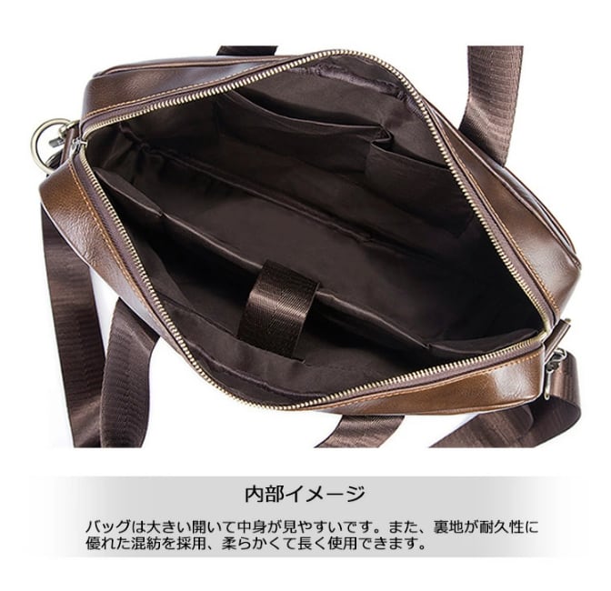 この本革ビジネスバッグは、品質とデザインを両立させた一品です。自分へのご褒美や、特別な方へのプレゼントとしてもぜひお選びください。快適でスタイリッシュなビジネスライフを楽しむために、この機会に手に入れてみてはいかがでしょうか!お見逃しなく!