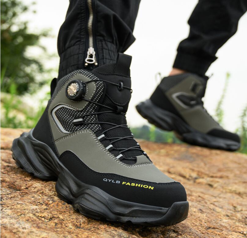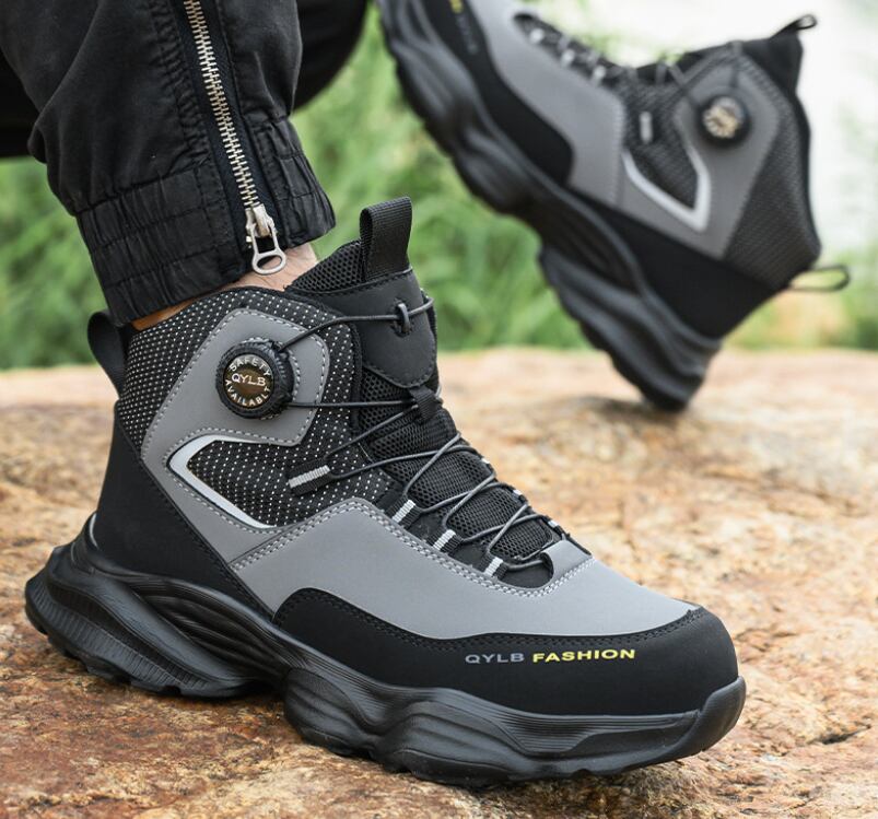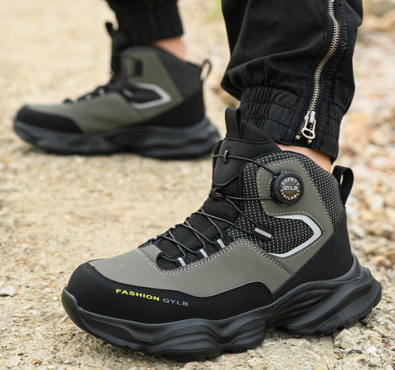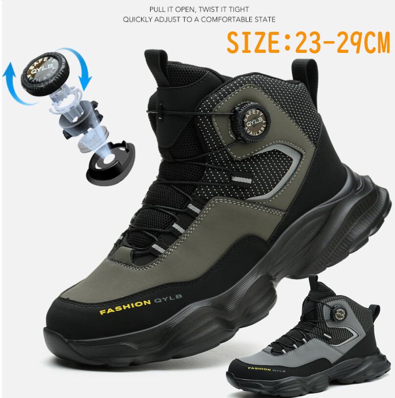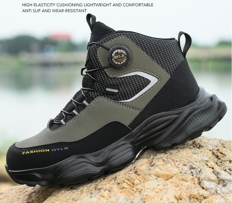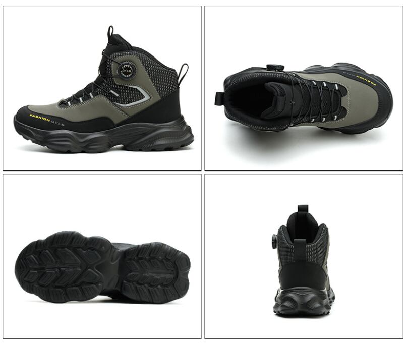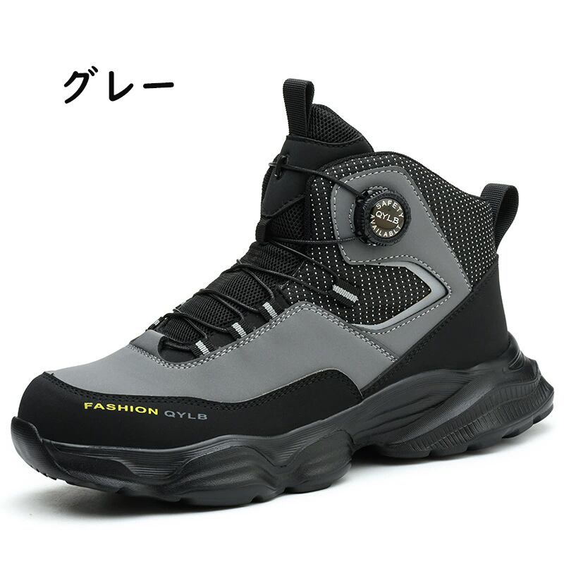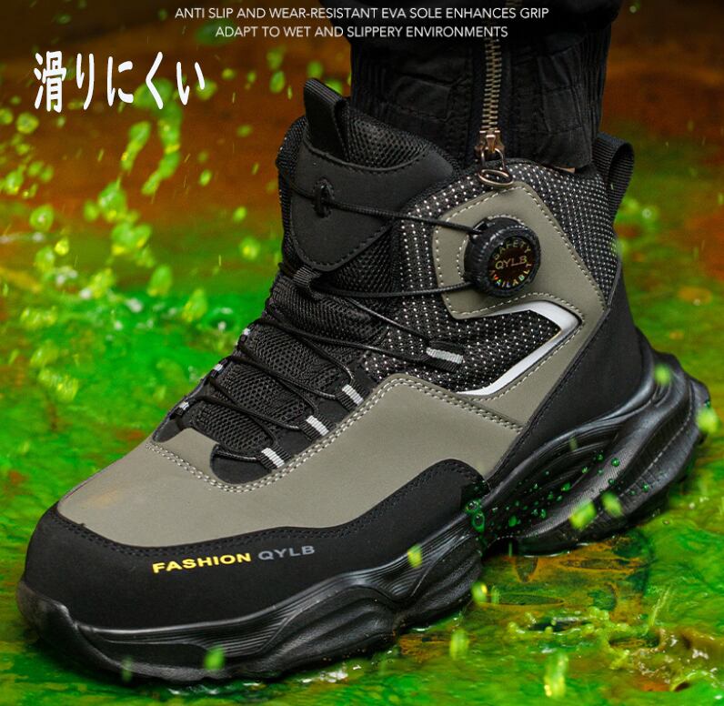 安全靴 おしゃれ ダイヤル式 メンズ レディース ハイカット 抜水 スニーカー 黒 通気 作業靴 クッション 厚底 疲れにくい 軽量 登山靴 あんぜん靴 踏み抜き防止