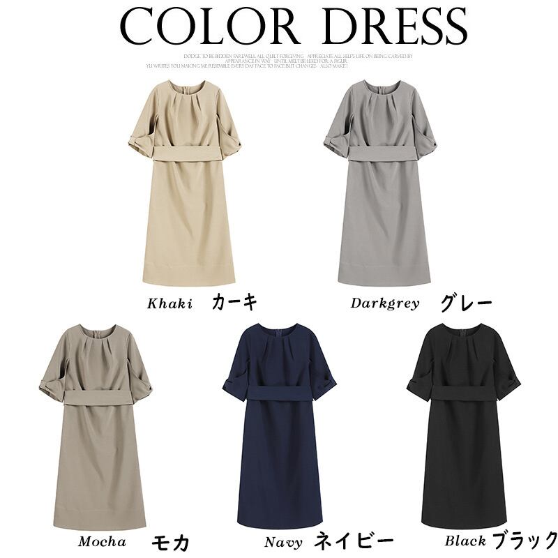 ワンピース ドレス パーティードレス フォーマルドレス コクーン レディース 五分袖 ミモレ丈 ベルト付き 体型カバー リボン卒業式 入学式 入園式 卒園式 フォーマル | seki01