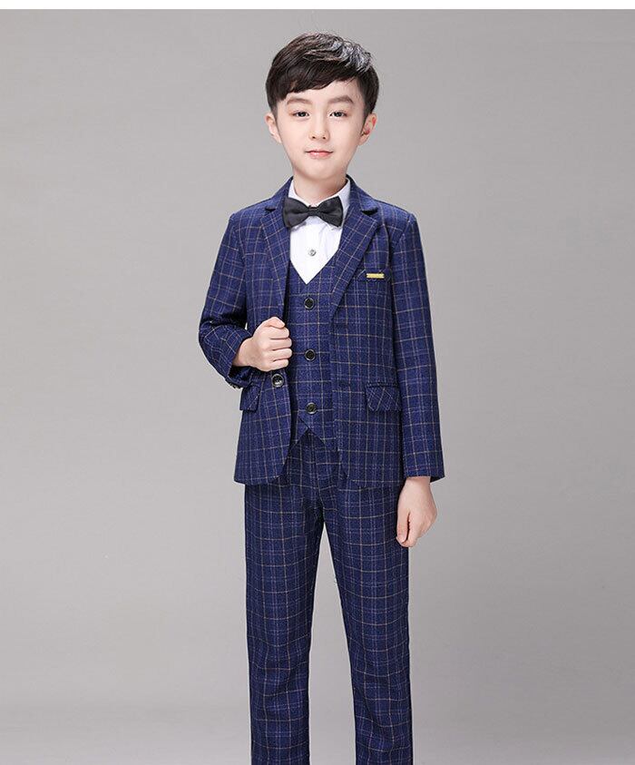 子供スーツ 入学式 ブルー 5点セット フォーマルスーツ チェック柄 入園式 卒園式 卒業式 七五三 発表会 結婚式 90 100 110 120 130 140 | seki01