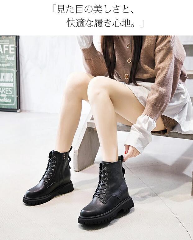 ショート ブーツ レディース 黒 ショート レースアップブーツ 歩きやすい サイドジップ ブーティ 編み上げブーツ 厚底 紐靴 ミドルブーツ 撥水 袴 軽量 幅広 | seki01