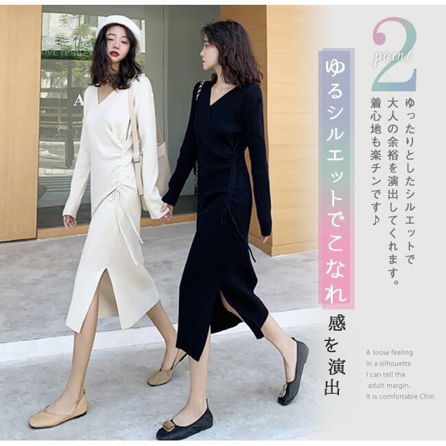 ウエストを程よくシェイプして、女性らしいシルエットに仕上げたワンピース。キレイめな印象の無地地で、オフィスや通勤、デートにもぴったりです。長袖でもロング丈なので色々なコーディネートが楽しめる万能アイテムです。