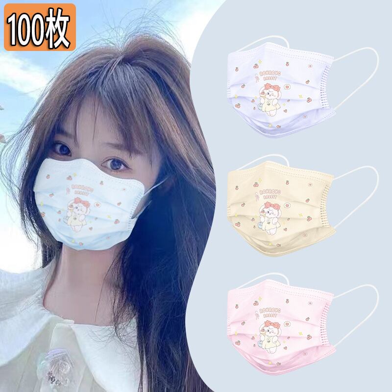 マスク不織布立体50枚 プリント 綺麗 花粉 飛沫 ウイルス対策 PM2.5 防水 3層 プレゼント マスク