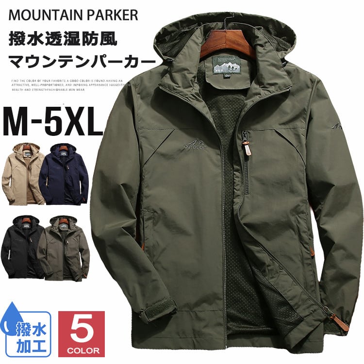 メンズにオススメのマウンテンパーカーです。撥水機能つきの薄手素材で、アウトドアウェアとしてだけでなく、デイリーユースとしても着用可能です。フードは取り外し可能で、季節やシーンに合わせてコーディネートが楽しめます。30〜50代の男性をターゲットに、ファッションやキャンプ、作業など様々な場面で活躍します。