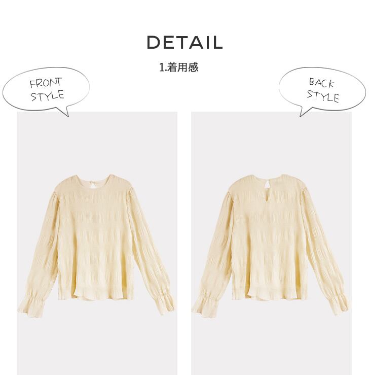ブラウス ギャザーブラウス トップス プルオーバー レディース 長袖 春夏 秋 ラウンドネック シャーリング 透け感 シアー フリル フレア袖 大人可愛い ボリュームスリーブ | seki01