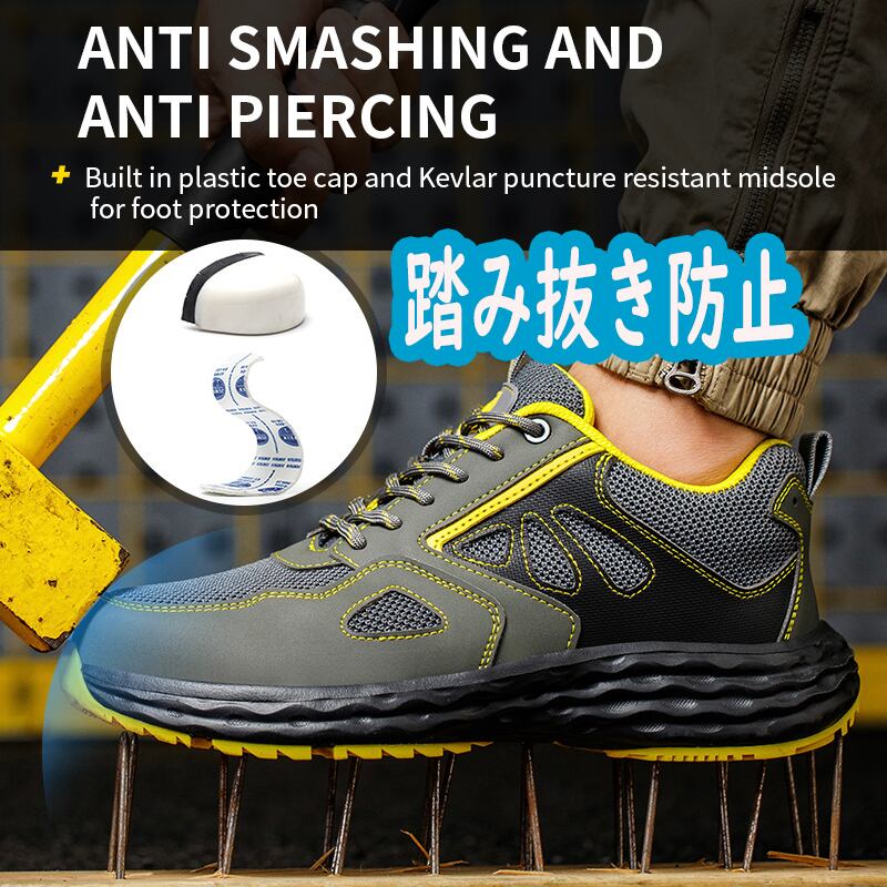 町工場で職人さんたちがひとつひとつ手作りした安全靴です。通気性が良く、蒸れにくいため、長時間の作業でも快適に着用できます。厚底設計で足の負担を軽減し、安定した歩行をサポートします。さらに、耐滑性、防刺性も備えており、作業中の安全性を確保します。男性だけでなく、女性や大きいサイズの方にも対応しています。さまざまなシーンで活躍する万能なワークシューズです。おしゃれなデザインも魅力的ですので、職人さんだけでなく、普段のカジュアルスタイルにもオススメです。
