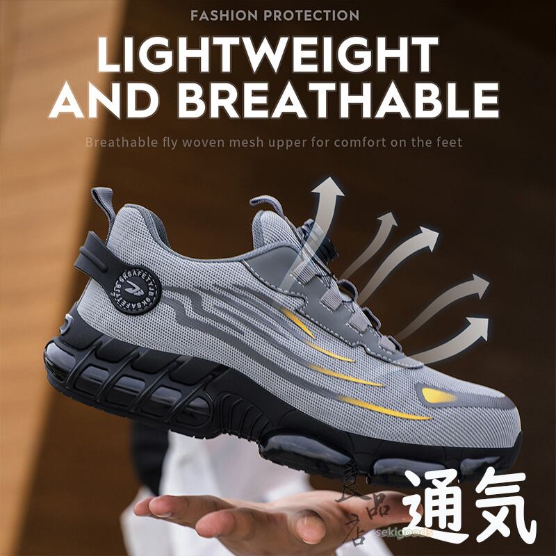先芯入りの安全靴でも、おしゃれで快適な履き心地を実現しました。紐なしのスリップオンデザインで、簡単に履き脱ぎできます。通気性にも優れており、長時間の作業や登山でもムレずに快適に履くことができます。