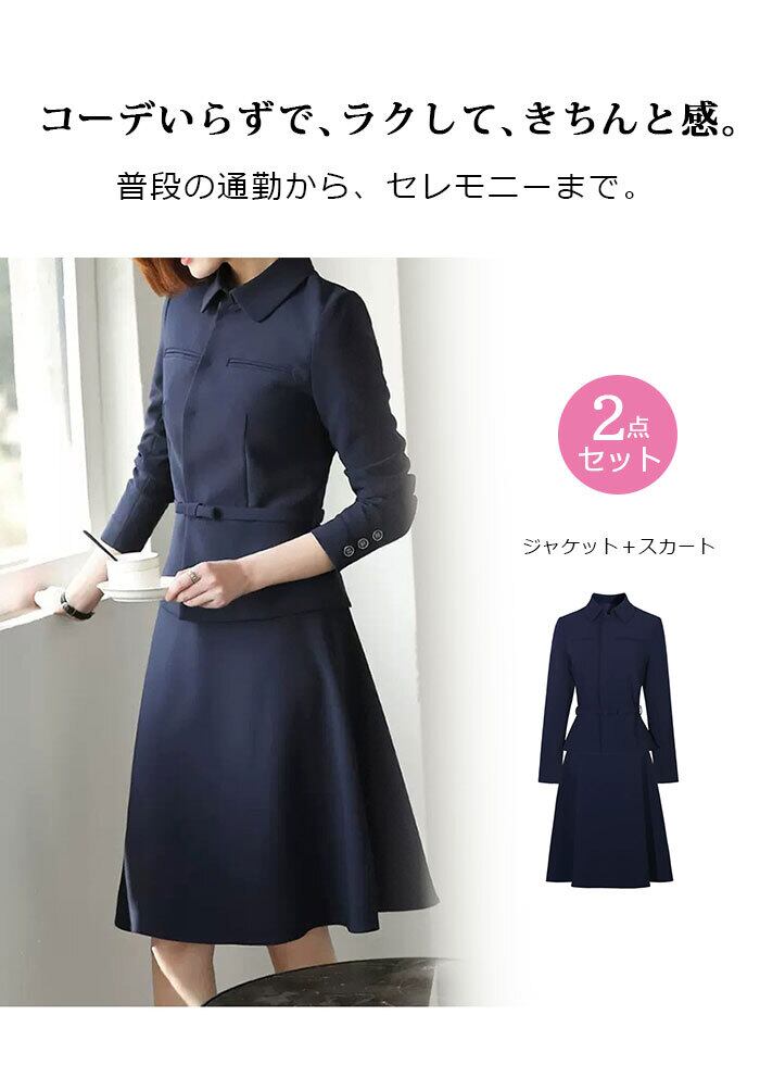 スーツ レディース セレモニースーツ スカートスーツ ビジネススーツ ママ セットアップ フォーマル 入園式 卒業式 卒園式 結婚式 通勤 ネイビー 七五三 2点セット 大きいサイズ | seki01