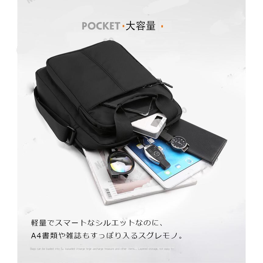 軽くて大容量の2wayビジネスショルダーバッグ。ナイロン素材で軽量かつ耐久性に優れ、ビジネスシーンから普段使いまで幅広く活躍します。A4サイズも収納可能で、通勤や旅行時にも便利です。さらに、撥水加工が施されており、急な雨でも安心です。スマートなデザインながらも大きめサイズで収納力抜群。使い勝手の良さと機能性を兼ね備えた一品です。