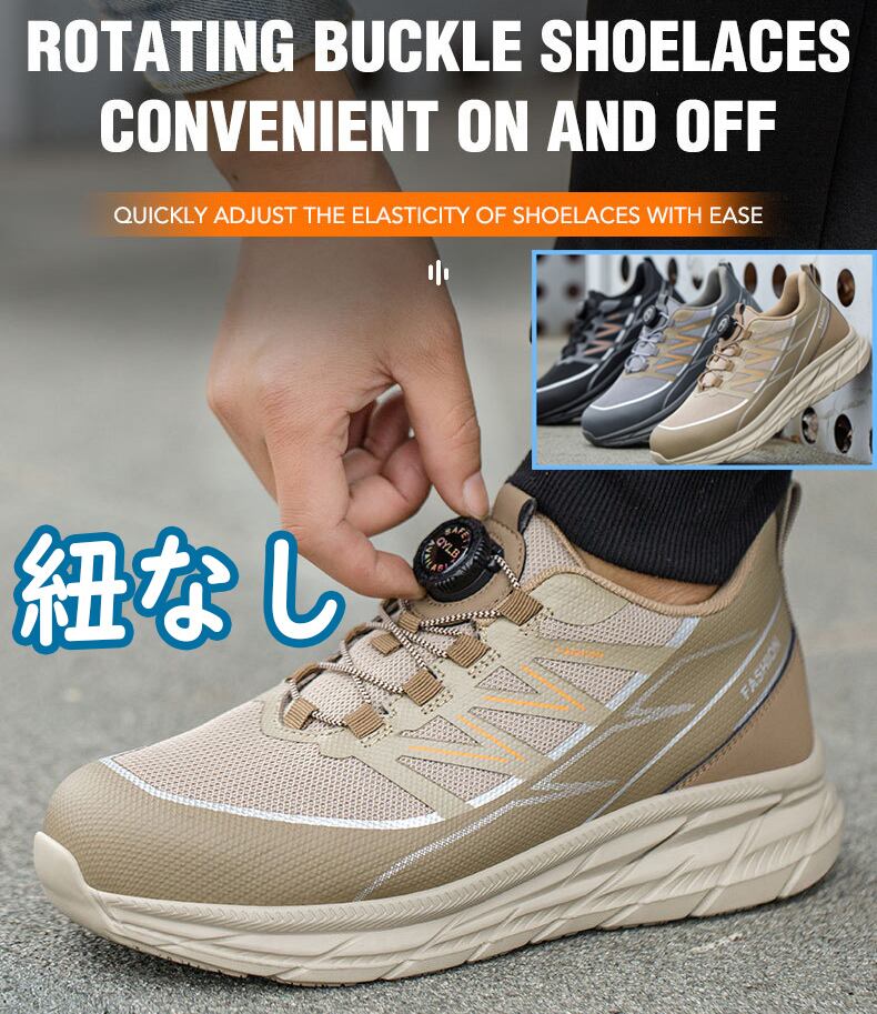このおしゃれなスニーカー型の安全靴は、紐なしで履きやすく、通気性が良いのが特徴です。軽量で疲れにくい厚底設計が快適な履き心地を提供し、長時間の作業やお散歩でも安心です。黒色はどんな服装にもマッチし、幅広いシーンで活躍します。さらに、登山や作業時にも安心な踏み抜き防止設計も備えています。