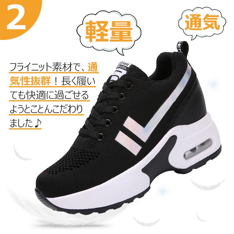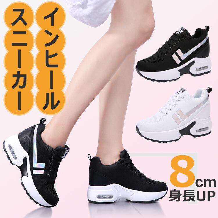 スニーカー インヒール レディース 厚底スニーカー 歩きやすい 白 黒 おしゃれ シークレットシューズ 通気 美脚 8cm厚底 シューズ レースアップ ヒールアップ 身長アップ 厚底シューズ | seki01