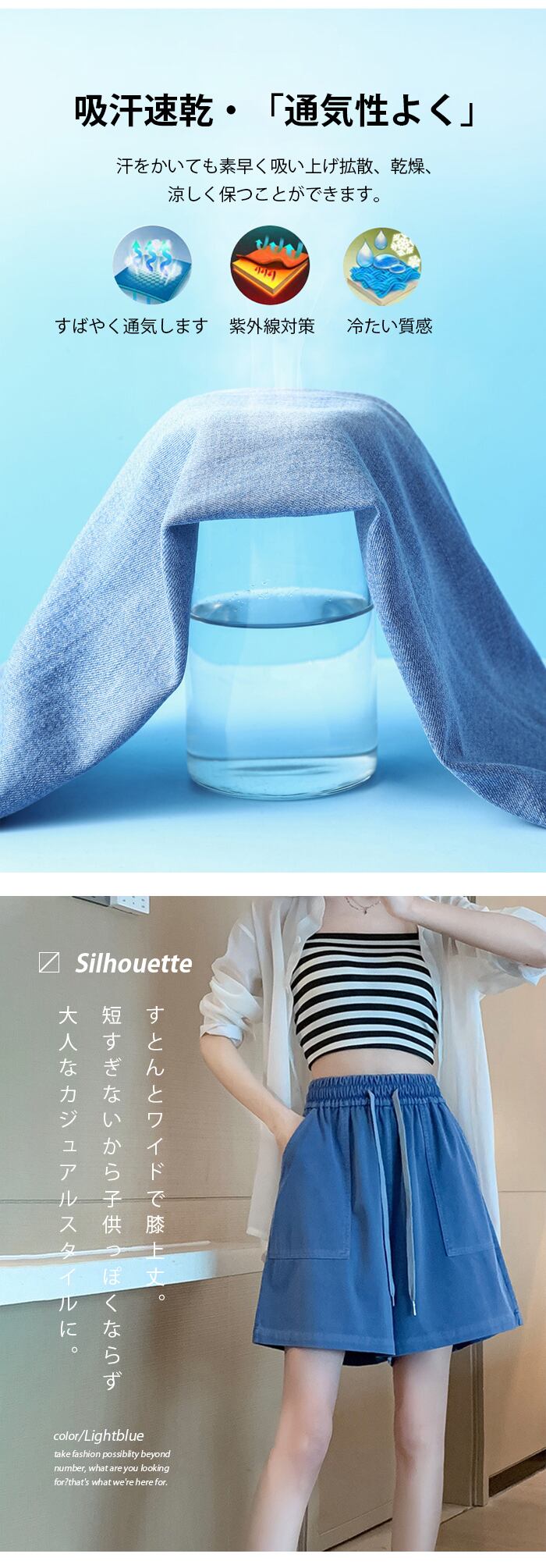 夏の暑さを快適に過ごすための理想的な選択、ガウチョパンツです。この薄手のデニム素材は、接触冷感技術を採用しており、肌に触れるとひんやりとした感触を提供します。