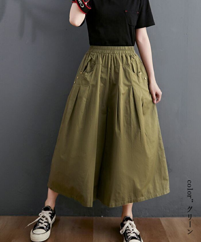 ワイドパンツ レディース 春 夏 ロングパンツ きれいめ ロング丈 ワイド ガウチョウ ボトムス ウエストゴム ポケット付き 大きいサイズ ゆったり