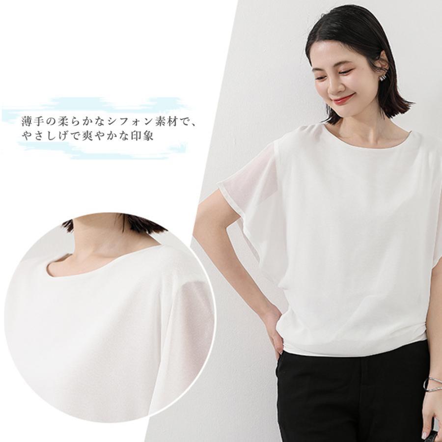 上品なブラウスが登場!シフォン素材の半袖ブラウスは、大人の女性にぴったり。ふんわり袖が女性らしさを引き立て、体型もカバーしてくれます。着るだけでスタイルがキマる優れものです。6色展開で、様々なコーディネートに合わせやすいのも魅力の一つ。シンプルながらエレガントなデザインで、オフィスやデート、パーティーなど様々なシーンで活躍します。これ1枚でおしゃれ度が格段にアップすること間違いなしです。大人の女性の魅力を引き出す、上品な一着をぜひお試しください。